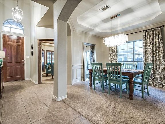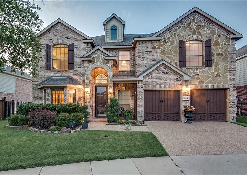 Gorgeous drive up appeal with stone, cedar trim and doors, covered porch and upgraded landscaping! Perfect setting with front views of common area green space, no homes directly in front or behind, for privacy. Dramatic cat walk plan features vaulted entry and 18 foot vaulted main living area with impressive 15 foot stone fireplace. 5 inch mahogany wood flooring, Plantations, 6 foot walk in and butler's pantries. Custom drapes and Capiz chandelier accent the dining. Island kitchen with soft sage painted cabinets, gas cook-top, stainless appliances, deep stainless sink and arched faucet. Secluded master with sitting area overlooks the expanded patio. 19x15 game room up serves the four teen sized bedrooms with walk ins. 2.5 CAR! Near The Village at Fairview shops, dining and 15 minutes to Legacy W employers.