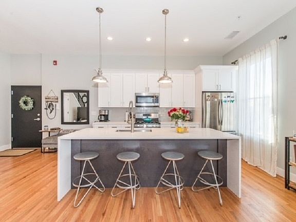 Location, location, location!! Close to all the town has to offer: restaurants, shops and NYC transportation. Welcome to this two story, two bedroom, 2 1/2 bath open-concept condominium. Chef's kitchen with stainless steel appliances, quartz countertops and waterfall island open into dining room and living room. Large coat closet and half bath. Second floor landing great for work-from-home office and 2nd bedroom with full hallway bath. Primary suite with walk-in closet into primary bath. Laundry in-unit. Storage room in basement. Assigned parking for 2 cars. Dog friendly (25lbs or less). Available May 1st. Move in today and entertain tomorrow!