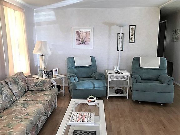 JUST LISTED TURNKEY - $21,900 This home features: 1. A Super Clean TURNKEY and Move-In ready home at a very good price!! 2. Very Nice laminate floors in the living room, dining room, kitchen and hall 3. Carpet in the bedrooms 4. The kitchen is a clean bright white with white newer appliances 5. The home is light and airy. The colors are very relaxing 6. The tie-downs were redone and new ones added last year by the Tallahassee Community College program with the state of Florida 7. The home has a membrane roof-over and it was maintenanced last year 8. The location is near Mantatee, Ellenton, and Sunset pools. You will be near both the new Northside and the remodeled Southside Fitness Rooms. You are close to the puppy parks, the community gardens, the Pavilion and the fishing pier. ACT FAST & CALL TODAY!! Don't forget to ask about the FINANCING available on this home. Colony Cove is an age qualified (55+) five-star resort community of manufactured / mobile homes. The "Cove" boasts 5 clubhouses, 5 heated pools, a riverfront pavilion and private fishing pier, a private marina, a fenced dog park (very pet friendly), tennis, shuffleboard, new pickleball courts, 2 new fitness rooms, 24 hour patrol, clubs for every interest, and much more. There are daily planned activities throughout the park. Bottom line, if you get bored here, it's your own fault!! The lot rent in Colony Cove is based on the homes' location. While the monthly rent may not be the lowest around, it's by far the best value for the money. Not only does the monthly rent cover all of the amenities of the community listed above, it also covers almost all other monthly expenses such as; water, sewer, trash pickup, all property taxes, lawn maintenance. . .pretty much every monthly expense except electricity and internet. The current lot rent on this home is estimated at $736.45 per month.