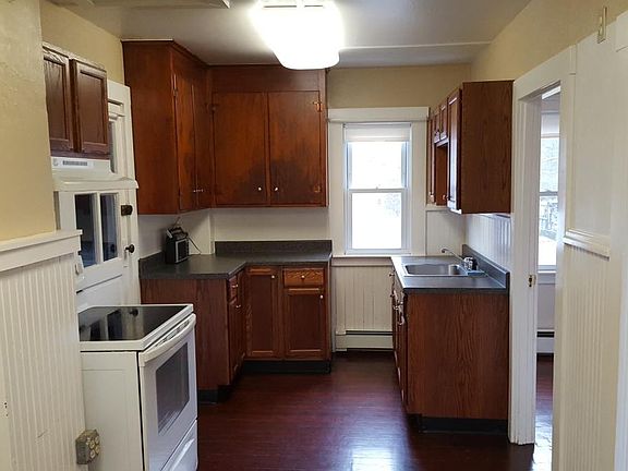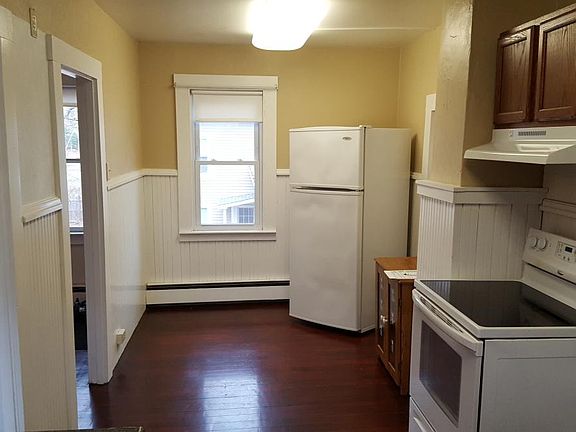 Includes Heat Home Office Area This is a spacious, clean and well maintained 2-BR (5-room) (800sf) 2nd floor apartment. It was recently remodeled yet this unit retains much of its original vintage charm. It features burgundy hardwood floors throughout, plenty of modern tilt-in windows, appliances (flat-top range and refrigerator), an eat-in kitchen, ample closet space and an attached storage area with washer/dryer. The bathroom is small (shower-only, no tub). No directly adjoining neighbors (private and quiet). Heat is included along with cold water, sewer, and trash removal. No smoking inside. No dogs. Will consider 1 cat or a small caged animal, fish, or bird, on an individual basis. There is convenient off-street parking right at the door. The private covered-stair entry leads to a small deck. This unit is in a residential area, not in an apartment complex. It is in a convenient location in the pleasant Rainbow Reservoir area of Windsor. Close to Bradley Airport yet without any of the airplane noise. 1-year lease, 2-month security deposit and full application required. A thorough credit/background/rental history investigation ($25 fee/adult) is also required after a successful and free application screening. Starting funds needed are 3 x $1,600 = $4,800 (2 months Sec. Dep. plus 1st month rent). Income requirement is 2.5 to 3 times the rent, so at least $48k (with a small debt load). Minimum desired credit score is 675. Showings by appointment. Please contact us through Zillow. It would be helpful if you list some personal info (income, credit score, animals, number of persons, etc.) with Zillow in advance. 1-yr lease, 2 mo sec dep., Thorough application and background check. Includes heat.