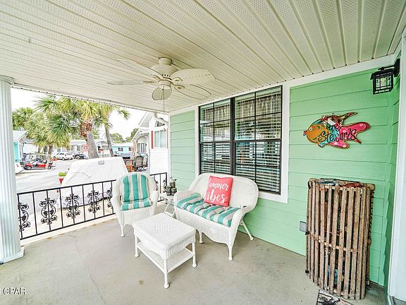 Check out this beautiful 2 bedroom, 2 bath in highly desirable Venture Out! This adorable home has an open floor plan and has a great beachy vibe. All the rooms are a good size and the home flows beautifully from room to room. Enjoy afternoons on the fabulous front porch that offers plenty of room for grilling and relaxing after a long day on beach. It doesn't get better than this! Venture Out is a golf cart community that has 300' on the beautiful pristine beaches of the Gulf of Mexico and 1,000' on the Grand Lagoon. Venture Out has something for everyone. With two pools (one heated), fishing pier, boat ramp, mini golf, children's playground and much more.