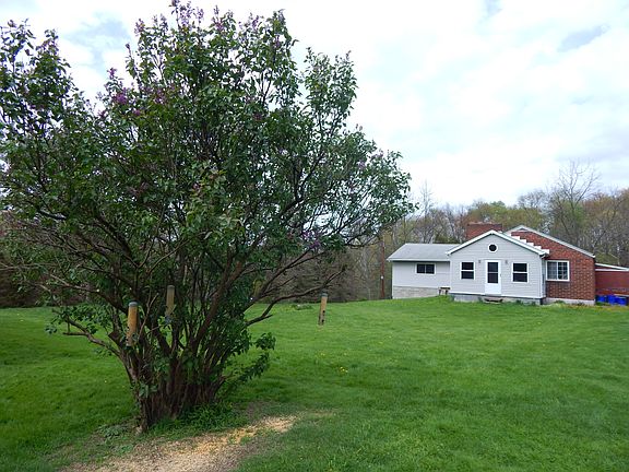 Bring the horses & Live off the land! 70+ Acres with 3 bedroom ranch & barn. 6 Stall Barn w/water & electric, chicken coop, additional outbuilding for storage or workshop, 5+ acres of fenced pasture, 15 + acres of hay & corn fields, 2 gardens. Additional Right of Way off Longvue Dr to access upper fields (amazing spot to build your dream home!). Beautiful wooded trails. Many fruit trees & bushes including numerous varieties of apple trees, blueberry patches (enough to sell), pear & plum trees, blackberry & raspberry bushes, elderberry bush, ginseng, morel mushrooms. Lazy stream and fresh water pond with dock. Value in timber. Easy living ranch has a beautiful 31X24 family room with wood planked cathedral ceilings and kitchenette, main kitchen has 3 pantries (canning storage), lovely sunroom overlooks grounds. 2 car integral garage. Come home to fresh air and wide open spaces '" live your dream here! OGM INCLUDED!
