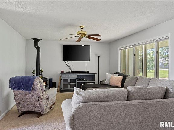 Check out this great Ranch style home in Pleasant Plains School District on 1 acre! This home features a nice living room with wood burning stove. Eat in kitchen with plenty of cabinet and counter top space. 4 bedrooms and 2 baths on the main floor with the Primary bedroom offering his/her closets, full bath with stand up shower. Laundry room on the main floor with built in cabinets. Basement offers a large rec room and plenty of storage. Outback you will find a large deck that overlooks the above ground swimming pool. No immediate back yard neighbors makes for a private setting. Storage shed stays too!