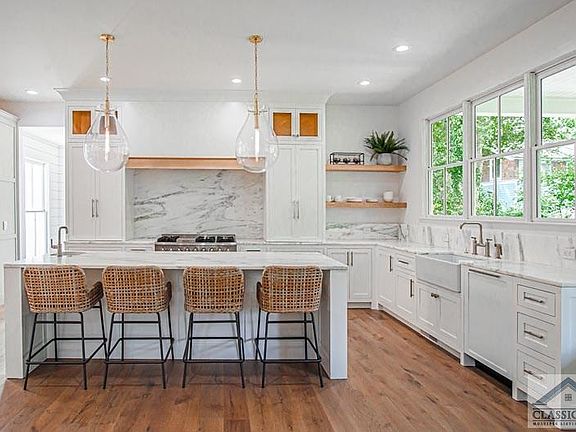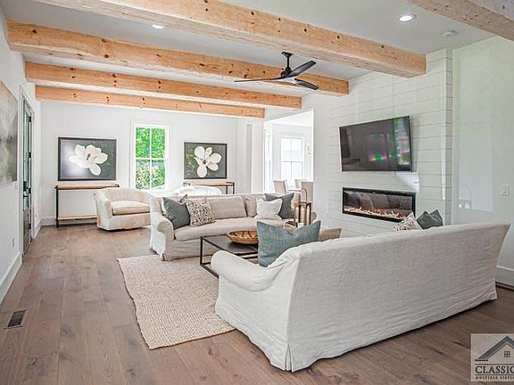 Welcome to 384 South Church Street in the Five Points area of downtown Athens. "Stripped to the studs," thisgorgeous home was completely re-constructed over the exceptional "bones" of a 1940's structure. No expense was spared in this updated, comfortable reiteration of a modern farmhouse. Hand-scraped oak flooring throughout and beamed ceilings on the main level give the perfect amount of rustic charm tobalance the installation of modern conveniences. An abundance of thoughtful storage is provided in each oversized space, ensuring that all your treasures and belongings have a dedicated place.Each bedroom and bathroom has a unique identity as evidenced by the custom tile and fixtures that give each space it's individual flavor. The master closet on the main level is appointed with a vast array of storage options and an motion-sensor room light. Seven gorgeous bedrooms (three of which have en-suite bathrooms) are generously sized and uniquely appointed.Custom closet systems constructed in each bedroom to create clutter-free, incredibly functional spaces. Outside spaces are equally groomed, perfect for quaint back yard entertainment or al-fresco dining on the covered back porch.Crawl space and attic are encapsulated.