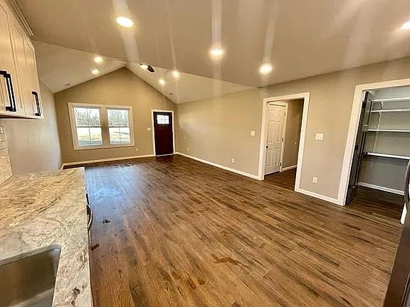 Newer construction in rural Warrensburg setting! This home has just been completed in Feb '23! 3 large bedrooms, 2 bathrooms, OPEN FLOOR PLAN slab on Large country lot. You'll love the Vaulted ceilings, Beautiful Granite, Hardwood flooring, huge pantry, laundry room, large entry room/foyer and beautiful Master en-suite with Large walk-in closet and glamorous full bathroom! NO SMOKING, tenant is responsible for all utilities and lawn care. MINIMUM 12mo lease