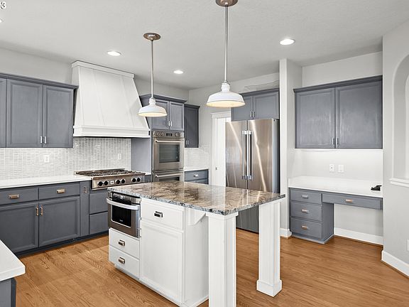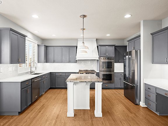 Immaculate and charming traditional home situated in coveted Tofte Farms neighborhood. 4 bedrooms + optional 5th bedroom or huge bonus room! Gourmet kitchen boasts oak hardwood flooring, quartz counters, a granite slab island, professional grade built-in double ovens, and a built-in gas 6-burner professional grade cooktop and hood! Kitchen also includes custom cabinets, desk area, a full height backsplash, and under-mount sink! Large cozy family room with luxury vinyl plank floors, gas fireplace, and built-in features. Primary suite with vaulted ceilings and a walk-in closet with closet organizers. Private spa-like bathroom in primary suite with soaking tub, gorgeous tiled shower, and soaking tub. Large RV/boat parking area behind fence along side of home. A nice patio and yard completes this amazing home. New furnace. Great neighborhood with views of a park in charming Canby. Prime location with a community pool and near parks, shopping and restaurants