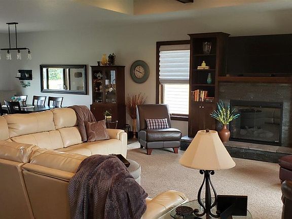 Looking for that home where nothing is needed? This meticulously maintained home located on Sawgrass Trail in the North Golf Course addition has it all! As you walk into the home your drawn to notice the open concept layout that is warm and inviting while retaining functionality. The coffered ceiling in the living room with addition to the fireplace make this space exceptional for a blanket and a great book. The kitchen and dining area has plenty of room for guests while providing great functionality with the large island and generous seating. Custom cabinetry, under mount lighting, tiled backsplash, and LG appliances makes this kitchen a dream to work and prepare in for the family or guests. Master bedroom is good sized with compliments of his and her vanities, tiled shower, and a large walk in closet. An office that could be used as a bedroom, common bathroom and a very functional utility/laundry area round out the main floor. All appliances stay with the house! Walking into the basement you have a large living room for entertaining and hosting. Two generous sized bedrooms, both complete with walk in closets and a common bath complete the basement. Possibilities of a Wet bar area in the basement. The garage is an ABSOLUTE DREAM... epoxy coated floors, floor drain, utility sink, electric heater, and plenty of storage options make this absolutely awesome for any set up! Lawn and landscaping has been tended to at impeccable levels, new She-Shed put up last year with a concrete pad, stamped patio with fire pit, and awesome deck to spend summer nights on! It really does have it all, come check it out today!!