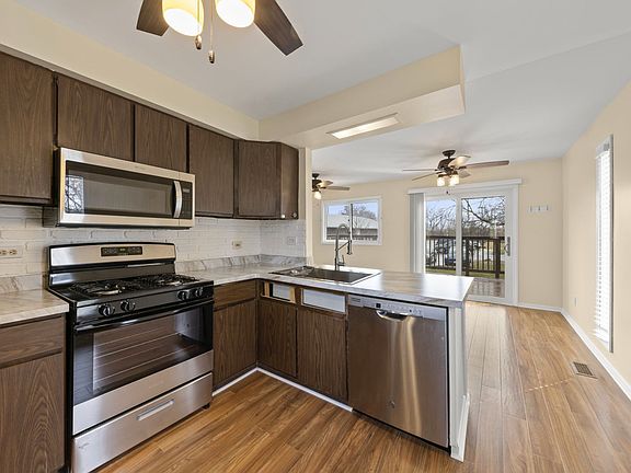 MULTIPLE OFFERS RECEIVED! FINAL & BEST OFFERS Due by Sunday, April 2nd, 2023 at 5PM! Escape the hustle and bustle of everyday life and enjoy the perfect blend of tranquility and convenience with this beautifully updated home nestled right next to Hampshire Park District and Seyller Memorial Park, offering many amenities for an active lifestyle! This stunning home boasts 4 spacious bedrooms, 2.5 updated bathrooms, and a finished walk-out basement for endless entertainment options. Step inside and be greeted by a great room featuring a beautiful wood-burning fireplace, perfect for cozying up on chilly evenings. The updated kitchen comes complete with newer stainless steel appliances, updated lighting, counters, large single base sink, and an eat-in kitchen with a slider door overlooking a picturesque backyard and oversized deck. The bathrooms have been updated with newer flooring and vanities, adding a modern touch to this charming home.The full-finished walk-out basement is a dream come true, featuring a 2nd wood-burning fireplace, 2 recreational areas, garage access, and a convenient half-bath. The larger 2.5 car garage includes a workshop area, ideal for all your future projects. Recent updates include paint, lighting, flooring, furnace (2018), central air (2018), water heater (2018), roof (complete tear-off 2016), insulation (2020), washer/dryer (2020), refrigerator (2021), dishwasher (2021), gas oven (2023), microwave (2023), kitchen counters, and sink (2023), front brick steps (2022), and asphalt driveway (2018). Don't miss this opportunity to make this stunning home yours and enjoy the peace and convenience it has to offer! Contact us today to schedule a viewing.
