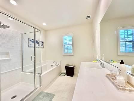 Lovely condo for rent in a gated community Lantana @ Beach. Located close to so many conveniences and easy access to freeways. This newer community was built in 2020 with many amenities such as a large pool/spa, a large playground, a separate pet run area. The particular location of this condo offers a large grassy lawn area for the resident to enjoy the green-view from the kitchen, living room and the master bedroom. It's also located near a secured gate that gives Lantana residents a convenient access to a popular shopping center where many restaurants, gym, shops and other conveniences are. The home itself features a modern open concept flooplan connecting kitchen and the living room together. All the 3 bedrooms are upstairs. Master bedroom with a walk-n closet, its own spacious bathroom that comes with dual sink, oversized shower stall and separate bathtub. 2 other bedrooms share another full bath. Individual laundry room is well located upstairs with plenty of shelf spaces. Other upgrades include an energy efficient solar system, recessed lights, central AC/heat, tankless water heater, dual pane windows. This home also comes with 2-car attached garage with direct garage access in the back and a private patio in the front perfect for your private BBQ area. One small dog is allowed or an emotional support dog is ok with $500 pet deposit. Prefer applicant with no late payment, no collections, and no eviction record.