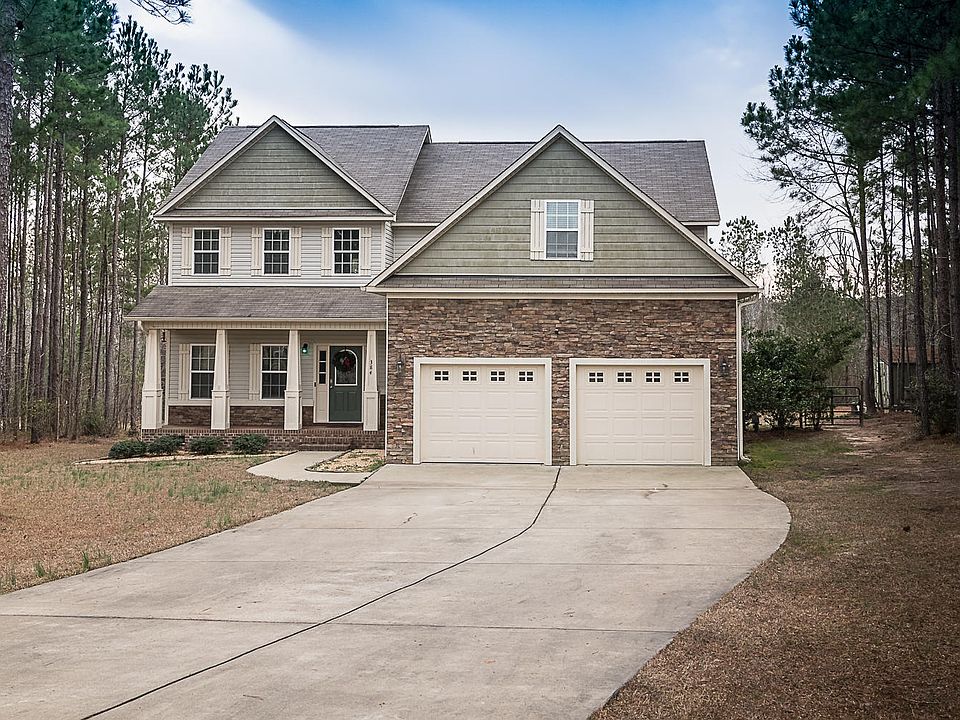 Spectacular home situated on 2.28 acres in quiet cul-de-sac in Gwen Oaks subdivision. This beautifully appointed home has a huge backyard with deck and hot tub overlooking Anderson Creek with no future development. The property also has a large out building and wooded parking area for vehicle/trailer. Two car garage with large anchored storage cabinets. The downstairs features a formal dining room, kitchen with island and SS appliances, spacious open floor plan with great room and fireplace. Downstairs master with large bath, jetted tub and walk-in closet. The incredible upstairs with a large bonus room and 4 additional rooms with closets that can be used as bedrooms. This is a perfect family home with over 3,000 square feet of living space situated in a park like setting.This is a perfect family home with over 3,000 square feet of living space, park like backyard, within walking distance of the elementary school and minutes from the base.