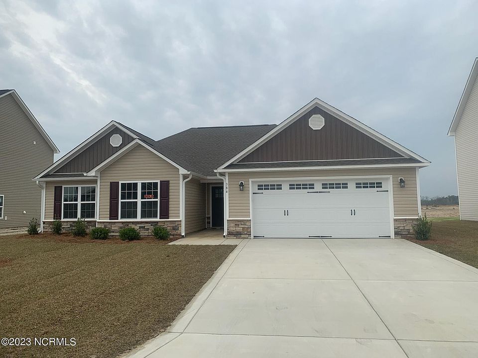 Welcome to Jacksonville's hottest new community, Stateside. Located off Gum Branch Road behind Stateside Elementary School. All new construction by Onslow County's most trusted & preferred Builder featured in Builder 100/ Top 200 Home Builders in the country. Stateside is 16 miles to Camp Lejeune, 12 miles to New River Air Station & minutes to area schools & shopping. Upcoming community amenities will include clubhouse area & community pool. The Vienna 1583, 3 bedrooms & 2 bath with approx. 1583 heated square feet. The quaint but spacious foyer welcomes you into the huge 14x13 living room that is open to the kitchen. The living room features a ceiling fan and a fireplace with a custom mantel. The kitchen features staggered flat panel cabinets, a pantry, and stainless-steel appliances to include a smooth top range, dishwasher, and a built-in microwave. The grand master bedroom is approx. 12x 16 with a huge walk-in closet that is approx. 9x13. Master bath features dual vanity, separate shower and a soaker tub. Bedrooms 2 & 3 are on the opposite side of the house giving you plenty of privacy, both prewired for a ceiling fan. Out back is your open patio for all your entertaining or morning coffee. $10,000 USE AS YOU CHOOSE!! Call today! NOTE: Floor plan renderings are similar and solely representational. Measurements, elevations, and specs may vary in final construction. Limited selections for buyer to choose. Call L/A to verify.