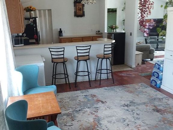 Thoughtfully laid out, this home features both formal living AND family rooms, a spacious kitchen with amazing counter space and storage, and a split bedroom plan for privacy. Laminate flooring in the living spaces, e-z care vinyl in kitchen, tile in bathrooms, and toe-cozy carpet in the bedrooms. Central air conditioning was installed in 2018 to replace the evaporative cooler, the interior is freshly repainted, the new stainless steel hood complements the even newer stainless steel glass-top range/oven, there's cable TV to the property, and Anthem Fiber Broadband is being installed this summer! The 192 sq.ft. storage shed stays (touch up of trim is in progress). Lots of natural light throughout, with an opening between kitchen and family room providing views to outside through the patio doors... and as you can see from the photos, there are fantastic mountain and valley views. The owner takes great pride in this home, as you'll see when you take your own personal tour!