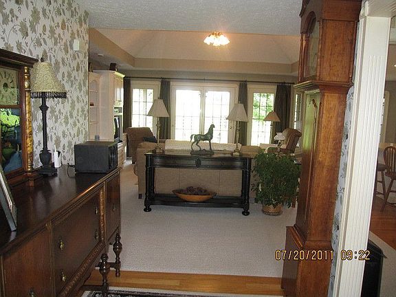 Beautiful country atmosphere awaits you at 3840 Bloomfield Road. This lovely four Bedroom two and a half Bath brick Cape Cod home with partial finished basement & two car attached garage is situated on ten lush acres in a serene setting. Tree lined driveway greets you as you approach the large inviting covered front porch upon entry into the home. Perfect place to enjoy morning coffee. Hardwood entry leads you to the much desired open floor plan of the Living Room & Kitchen area. Home features 2301 sq. ft. of comfortable living space. Kitchen features an abundance of nice cabinetry and comes equipped with a full compliment of appliances including range/oven, refrigerator, microwave and dishwasher. Great center island/breakfast bar is an added bonus. Eat in Kitchen features an eat in dining area and there is also a separate Formal Dining Room great for entertaining. Large Master Bedroom suite allows for oversized furnishings & offers a large walk in closet. Master Bathroom suite with his and her vanities along with large Jacuzzi tub and separate shower. Two additional Bedrooms and full Bath complete the main floor of the home. The spacious 4th Bedroom is located on the second floor & features geothermal heating. Downstairs the basement reveals a large Family Room and half bath. Large walk in closet in the basement allows for additional storage. Outdoors you will enjoy a lovely covered patio area with scenic views of the acreage. Property features a 61x80 8 stall barn with tack room & lean to with electric and water as well as a nice pond and board fencing. Immaculate inside and out this is a must see!! Great horse property! Call today for your personal tour of this well cared for home in the country. Brokered And Advertised By: Area One Realty Listing Agent: Area One Realty