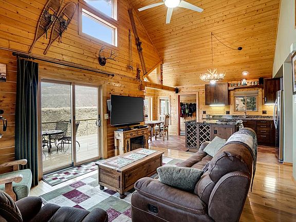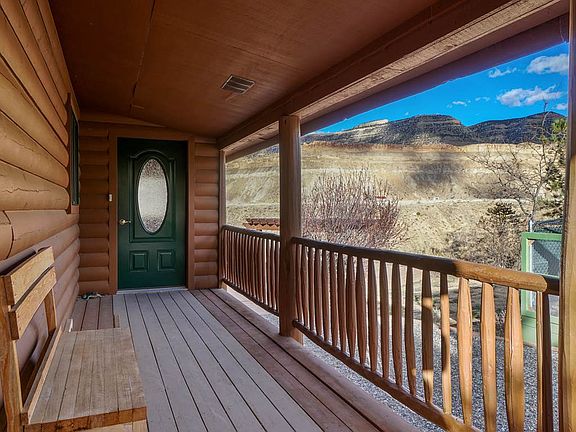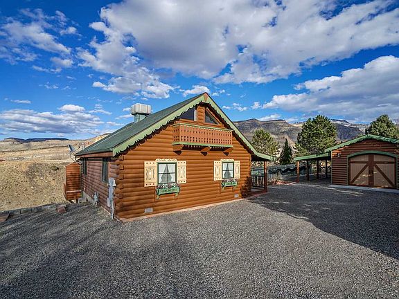 Sweet Palisade, Colorado Chalet! Quite possibly the cutest log home ever! Perched high atop a peaceful bluff rests this story book hideaway surrounded by tranquility and stunning views. You will feel as if you have traveled far and wide. Quaint and welcoming you will struggle to leave. The warmth of the log construction draws you in as you enter the great room via the mud room. Impressively updated with modern style, the main level hosts the master bedroom, a second bedroom and gorgeous bath and laundry. Another bedroom and full bath with jetted tub are found on the second level. Be the first to spy on the morning sun as it calmly rises over the base of the Grand Mesa while you sip your morning surge, or retreat to the lower terrace to unwind at days end by the cozy fire pit. With just the right amount of usable ground, the remaining 2 acres provide protection of your views and privacy!