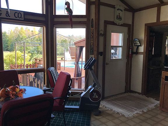 SALE PENDING 4 Bedroom 2 Bath House on 6.5 Acres; 2,449 square feet of living space 1,008 square foot finished basement And a 15’x26’ heated attached garage with build-in cabinets along the front of the garage. ?On their side of the road, they have no neighbors close by at all – surrounded by lots of land and trees. ?House Features a beautiful Spa Room with Large floor to ceiling windows looking out the back at a spacious yard. ?The Spa Room has a built in Fireplace (propane), a Bar Area which includes the bar and bar stools, and a full bathroom. ?Walk out of the Spa Room onto a large deck that features an above ground heated swimming pool with a slide (but deck surrounds the pool, so it appears to be sunken), a gazebo, a large covered area that you can entertain and stay out of the elements and a tiki hut as well. They would heat the pool with a wood boiler. Wood stored in bottom of Pool House with access close to boiler – Pool house on top of deck would store everything needed for pool plus all of the play toys and blowup stuff used in the pool. ?Plenty enough room to entertain with comfort. ?The house has 2 bedrooms and 1 full bathroom on the main floor ?2 bedrooms upstairs with a large commons area as well ?Laundry area on the main floor which is very convenient – washer and dryer included. ?This house also includes a pool table in the basement for entertaining. ?In the basement there is a dedicated canning room. ?Kitchen appliances included will be a stove, refrigerator, dishwasher and garbage disposal. ?In the dining room there is a large built-in China Cabinet. ?This 6.5 Aces features a variety of trees including some apples trees – beautiful landscaping with flower beds that feature a variety of perennials. ?There is a root cellar on the property and plenty enough room to put a spacious garden. ?32’x64’ Large detached framed garage. This garage has a partial wall with a large sliding door partitioning the garage in half if you want. Both sides of the garage are insulated and heated and has 220v welding receptacle. This garage also has a 12’x15’ bump-out in the back with a large garage door. In this garage, it features a bench along one wall to work on with cabinets below for storage. In the back, along one side of the partition, there are strong metal cabinets built-in. In addition, there is storage suspended above in one section as well. ?For additional storage, there is a large 16’x20’ Grey Barn built on a concrete pad with overhead storage along with a covered dog kennel with a cement pad located along one side of the barn. ?Another 9’ x 9’ metal storage shed is also on site for even more storage. ?House has an asphalt roof and vinyl siding for easy upkeep. ?Blacktop driveway with a backup drive. NOTE: Their place would turn into a campground during the Bark River off-road Races. They would have many campers come and camp out for the entire weekend. During one of the races, they had 50 campers! THIS HAS BEEN CANCELLED NO OPEN HOUSE: Sorry for any inconvenience. Viewing by Appointment Only during the week – you can text or email me by email and phone connected to this posting. 3840 D Road Bark River, MI 49807 Starting at $274,900 NOTE: Any and all offers can be refused.
