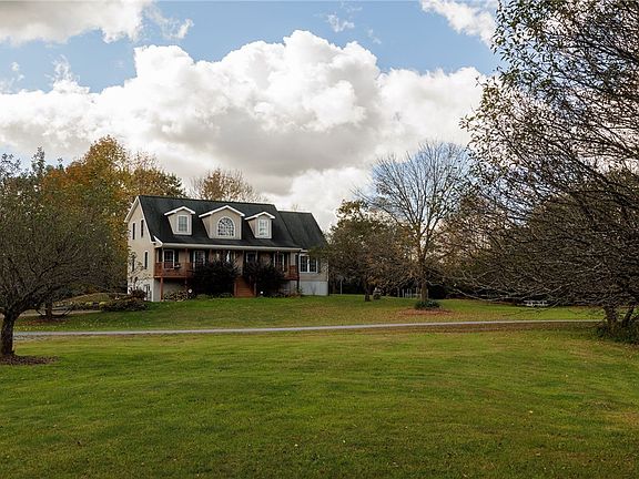 Wow what a rare opportunity to purchase a 5 Bedroom/2.5 Bath Colonial Home with detached 40X32 garage situated on 21.9 acres. Following the blacktop driveway to the home you know it will be a MUST SEE. Country living, seclusion, tranquility, waterfrontage and so much more. The main living area of the home includes a beautiful foyer, living room, formal dining room, amazing kitchen with granite countertops, modern appliances and let’s not forget the island. There is an office, laundry room with ½ bath and an amazing primary suite that has stand up shower, jetted tub and walk in closet. The 2nd story of the home has 3 bedrooms with a bonus room off from one of the bedrooms and a full bath. The walkout basement has an open concept of the main living area, a workout room that could be used as a 5th bedroom, the storage/utility room with built in shelving and in floor radiant heat. Fall in love with the view of the amazing yard from your covered front porch, enjoy grilling on your back deck or nights spent around the firepit. Mature apple trees, raised garden beds with berry bushes, walking/riding trails, and the sounds of water flowing from the river. 20-minute commute to Fort Drum.