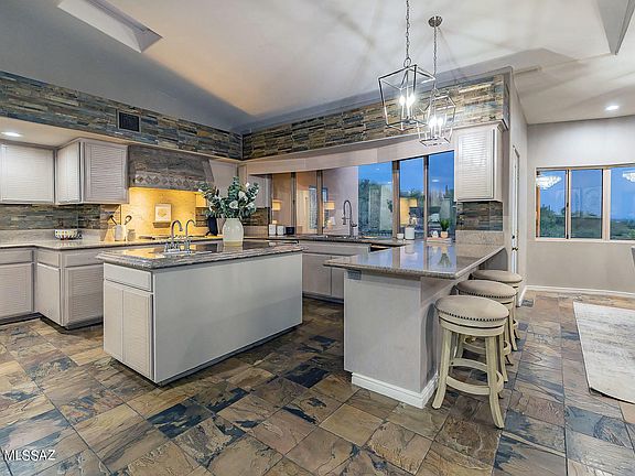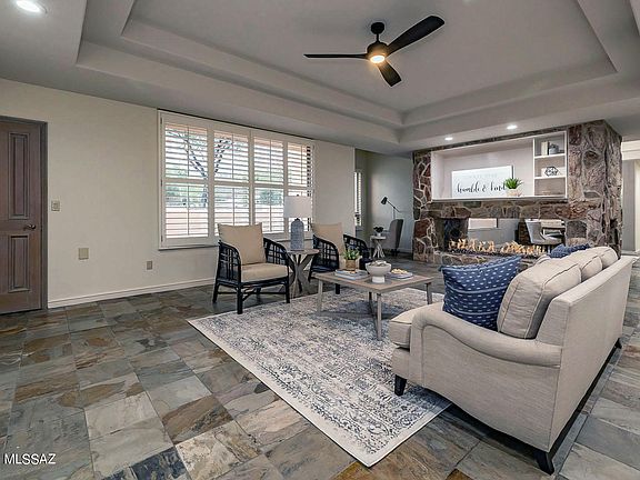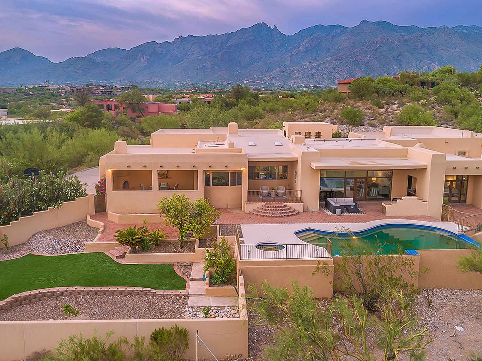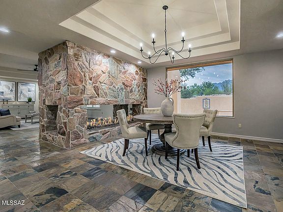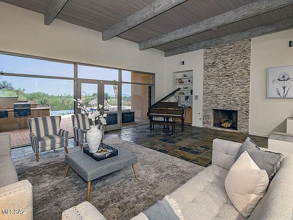 * This private and inviting prior Southern Arizona Realtor Home Tour winner, situated on 1.83 Acres of prime homesite in guard-gated Catalina Foothills 10, has been updated with gorgeous new lighting fixtures, new fireplace surround, fixtures and landscaping. With over 5200SF, sweeping city & mountain views, fresh paint and handsome slate flooring throughout, five fireplaces, a stunning pool/spa and multiple patios and courtyards, this is the picture-perfect showcase of natural beauty in exclusive ''Cat 10''. There is generous space for intimate family gatherings and sumptuous entertaining, and many well-lit walls for fabulous displays of art for the collector. Featuring stunning slate floors and granite counters throughout, coffered and ribbed wood ceilings,