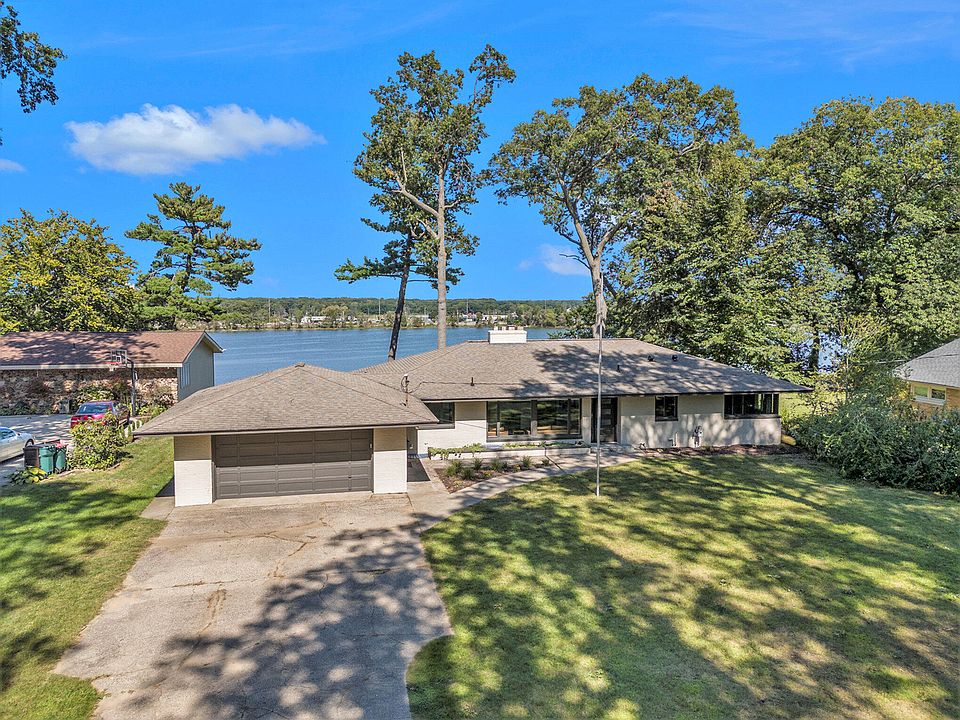 Welcome to a totally remodeled 3 bedroom home with 100 ft of frontage on the highly desired 695 acre all sport Mona Lake. The updated main floor has a living room, eating area, new kitchen with stainless steel appliances, den with a fireplace, 3 bedrooms, laundry and 2 new bathrooms. The lower room has a 25 x 15 rec room with fireplace, workroom, and storage. Other perks: LVP flooring upstairs and down, new paint, gas logs, and exterior doors, almost 2000 sq ft on the main floor, and on.66 acres. Call for a private showing today! Vacation everyday with the lake.