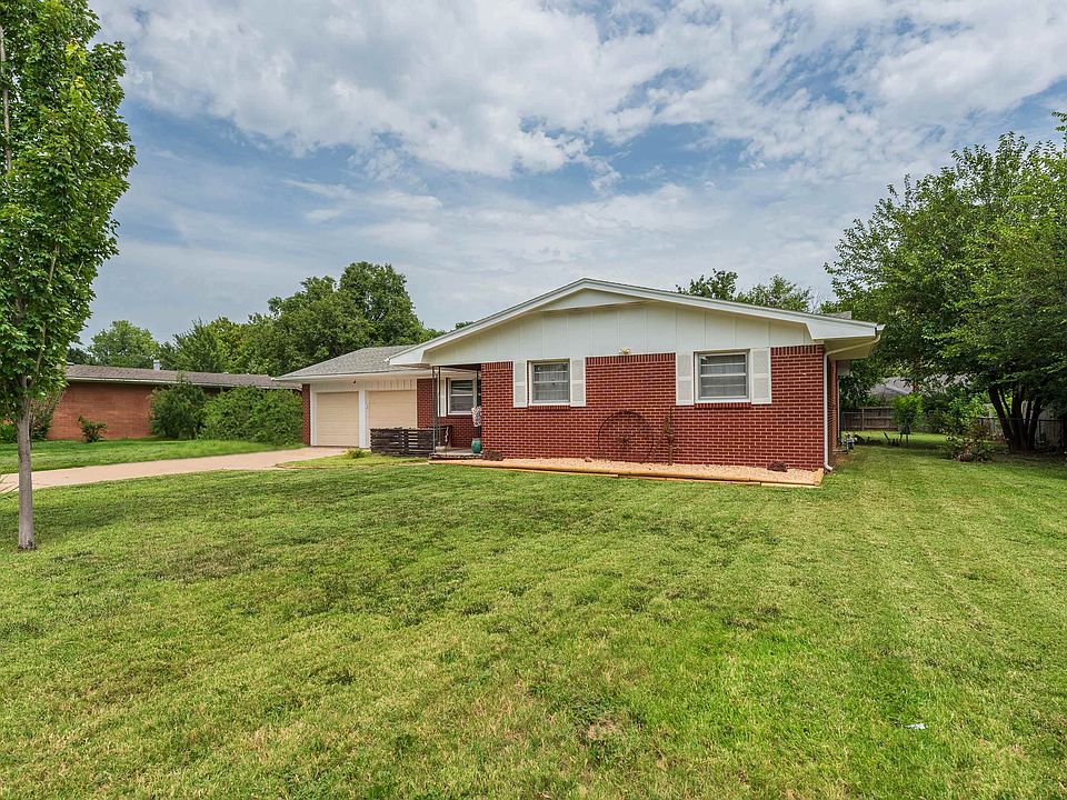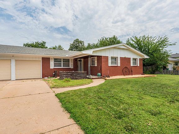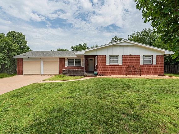 Charming 3-bed, 2-bath ranch home with a 2-car garage, set on a large .35-acre lot in the sought-after Sherwood Glen neighborhood of North Wichita. As you enter, the spacious and bright main living room welcomes you with new carpet and abundant natural light. Adjacent to the main living area, a second large living space opens to the kitchen, boasting a wood-burning fireplace with a custom mantle, creating a cozy hearth room full of character. The kitchen features ample storage, updated backsplash, and countertops. Step outside to a fully fenced backyard, offering plenty of space for outdoor enjoyment. A covered patio off the family room adds to the allure, providing an ideal spot for extended outdoor living. Convenience is at its best with a main floor laundry room leading to the spacious 2-car attached garage. The home has been enhanced with fresh paint inside and out, new carpet throughout, updated bathroom and new HVAC, making it a must-see gem.