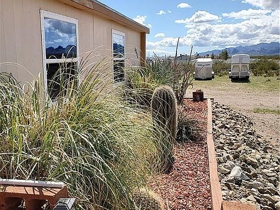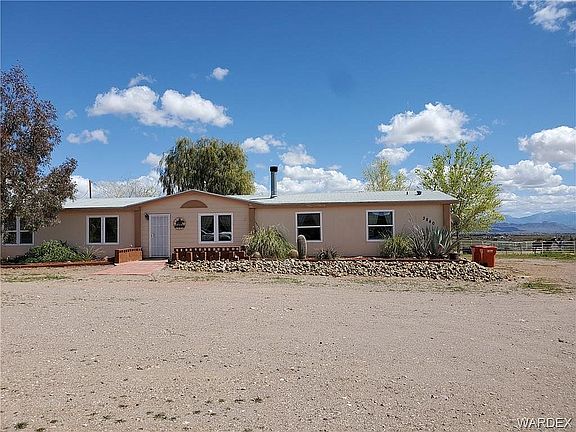 Best of the West ON PAVEMENT! Built for champion barrel racer, this complex must be seen to be appreciated. Sold separately or with the adjacent lot to make a 4.5 acre horse property with riding area and corrals (fencing may be negotiated separately). This is a 4 bedroom, 3 bath ground-set doublewide with many upgrades; ceiling fans throughout. Custom cabinets and tile counters in the all electric kitchen with breakfast nook. Large master bedroom with TWO walk in closets and a large master bath which includes a Jetted tub and separate shower. Large living featuring a stone fireplace and built-in storage. Family rooms, dining room, covered parch, and in-home laundry room. New windows, the roof was replaced in 2012. 12 X 16 shed with built-in meat locker and tack room. Two 2500 gallon water storage tanks, and water lines to the property. Water pond supports koi. The property also boasts a 200 x 300 foot roping arena with roping chute, stripping chute, alleyway, and catch pens. Two small sheds and a 40ft conex.