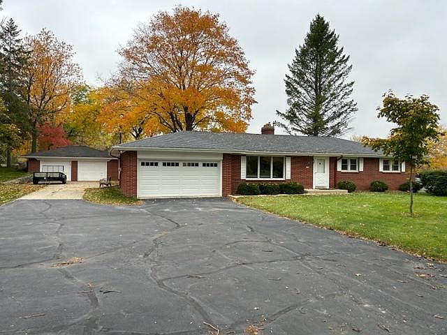 All brick ranch home on 1/2 acre with beautiful views and private in the back! Features include hardwood floors, updated kitchen with appliances, brick fireplaces on each level. Updated mechanicals & windows. Finished rec room with wet bar in the basement. 2 car attached garage PLUS 2 car detached garage!
