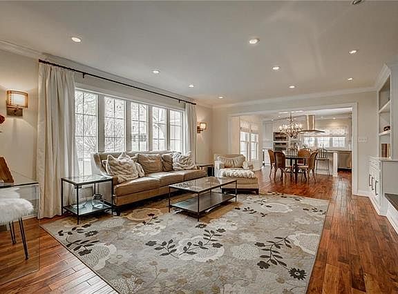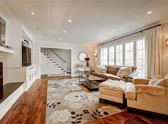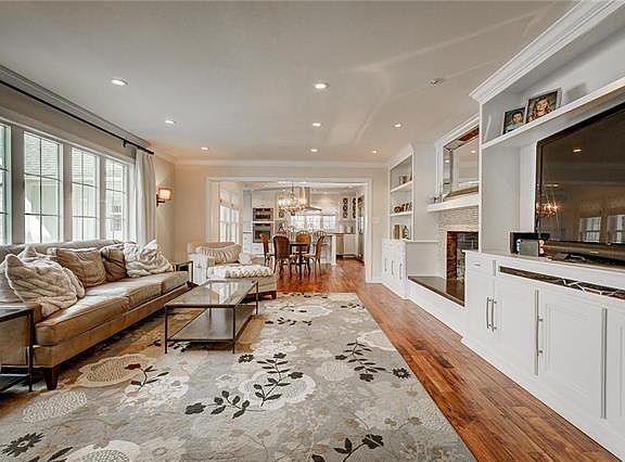 Exquisite home boasts 5 beds, 4 full & 2 half baths, beautifully renovated living spaces, fin.bsm't. Special features: beautiful HW flrs, exposed brick, crown moldings, built-ins, oversized windows, two fps, & French doors. Kit w/center island, granite countertops, spacious pantry, appliance garage, wet bar w/bev fridge/sink, and JennAir stainless appliances. Sunlit DR w/chandelier is open to K & LR for easy entertaining. Sunroom w/brick floor, French door entry, lrg. windows w/transoms, & door to private yd. FR w/ custom built-ins, recessed lights, and crown molding. LR w/floor-to-ceiling windows, sliding door to patio, and wood-burning FP. Master suite on 1st floor w/full bath and walk-in closet. 3 add'l spacious bdrms, 2 full baths, 3 large hallway closets on 2nd flr. Finished bsm't w/HW & neutral carpet, wet bar w/seating, half bath, surround sound speakers, unfin storage area. Private, fenced yd w/swingset, pond, and paver patio. Don't miss the charming apartment above garage!