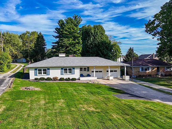 3 bedroom well maintained ranch on an 1 acre level lot. Fenced yard. 2 sheds 14x7 & 20x10. Newer roof 2024. New HVAC. Newer hot water heater. Large family room with brick WBFP. Chimney relined in 2020. Vaulted ceilings. Kitchen/dinette are including all appliances. Backsplash in kitchen. 2 full baths. First floor laundry. Newer garage door opener with double front & rear garage doors leading out to 11x18 patio. Newer Champion lifetime limited transferrable warranty 2017. Newer sump pump. Abundance of storage. Large lot is great for entertaining or playing. Close to school, shopping and restaurants, highways. 8x11 front porch. MUST SEE!