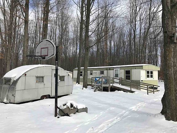 Great opportunity to purchase 7+/- acres of up north property near Wolverine, close to I75. A Great time buy and begin to enjoy all of the summer and winter attractions that Northern Michigan has to offer. Nice mix of hardwoods on the property. A 14'x70' mobile home, camper, an airstream travel trailer and a storage shed are included in the price. This would make a great get away for hunting, snowmobiling, 4 wheeling, birding or a quiet place to enjoy mother nature.