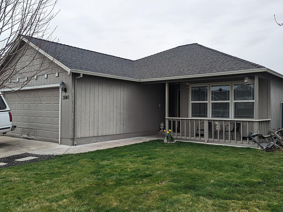Wonderful 3 bed, 2 bath home, with over 1200 square feet of living space. Large living room with vaulted ceilings that leads into the kitchen with plenty of cabinet and counter space. There is an eating area off of the kitchen. You will notice new flooring and new moulding in the home. The master bedroom is located at the back of the house, and has a walk-in closet, as well as slider doors leading to the back patio. This home has a great floorplan and offers a lot of natural light.
