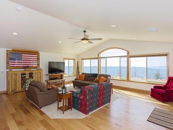 Spectacular Mountain Views in a practically new Western home! You'll fall in love w/ beautiful mountain sunsets over Jose Basin & the dazzling city lights of the valley in this 3BR/2BA home w/ ultimate mountain comfort. This well-developed 5 acre site has level concrete all around, an excellent wide paved entry, w/ area for RV parking, and additional metal framed garage to store all the toys & equipment. Inside this wonderful single level design there's rich hardwood flooring, tiled baths, and plush comfy carpet. Get all season comfort with HVAC cooling, central heat, and a great free standing, glass door, wood burning stove w/ its own custom stone landing. Kitchen is equipped w/ high-end matching GE appliances, dishwasher, micro, custom cabinets, granite counters, and a pantry. Both sizable guest BR's have closets, and the large master has a walk in closet, w/ private patio access to a picturesque outdoor claw foot tub. Call to see one of the best views available.