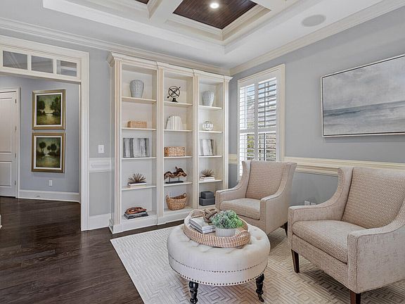 Sophisticated design in this former model home. Built with timeless traditional heavy moldings, coffered ceilings. Gas stove with pot filler and griddle. East facing sun fills the study as you enter from the covered porch. Built in bookcases in 4 rooms!! Fabulous owner's suite with door to private covered porch and beautiful flagstone patio with built in gas grill. Plantation shutters throughout the first floor. Extra long driveway for guest parking.