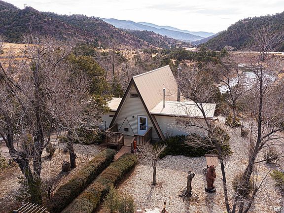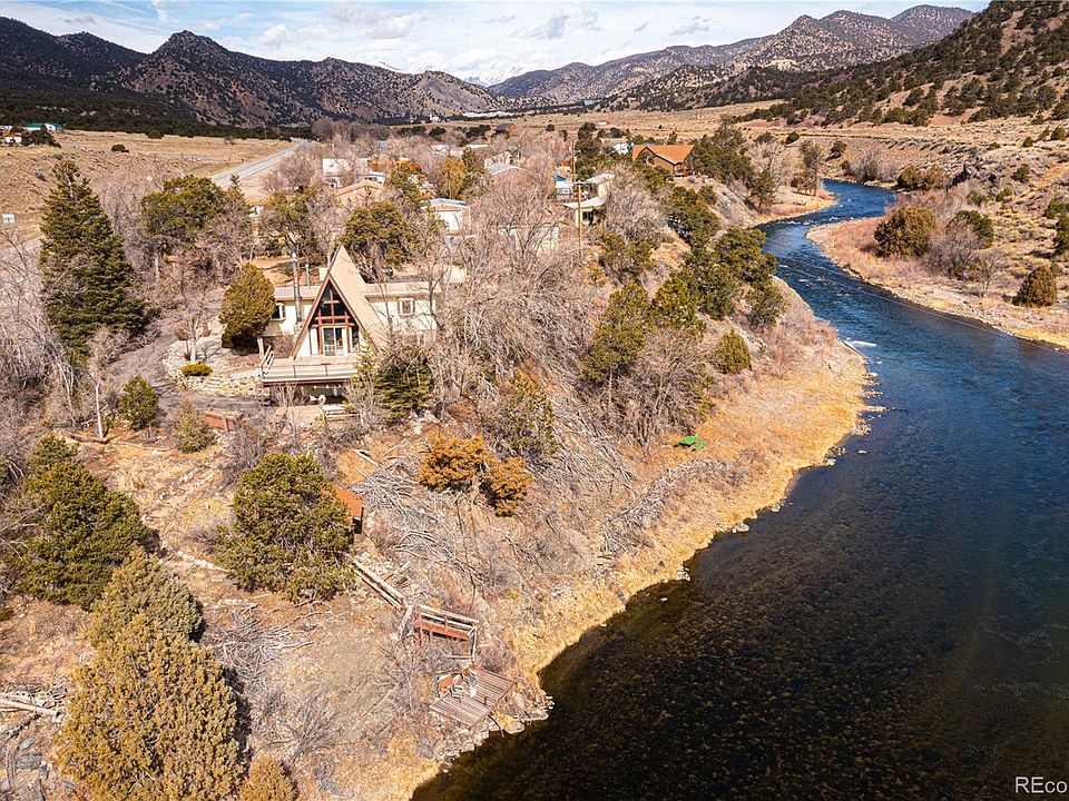 Riverfront Living! This one-of-a-kind property offers an idyllic setting right off the bank of the Arkansas River. Property offers 1.72 acres of land and 350 +/- feet of easily accessed river frontage. The property has level picnic and play sites right to the river's edge. Imagine the possibilities and fun you will have putting your kayak, boat or fishing line in right from your property. Home offers 3 bedrooms 1&1/2 baths, built in the 60's, and is in need of some TLC and updating. Spacious home has 2 levels, upper living room with wood burning fireplace, huge deck, bedroom and bath, lower-level family room, rock propane fireplace, kitchen, 2 bedrooms, laundry and bath. There is a 2-car detached garage, small RV carport, hobby/artist cabin and small play cabin for the kids. Located in Fremont County, this property can easily be a vacation rental. Unique home with a huge deck off the family room to enjoy the views of the river and surrounding mountains. Amazing river property, love where you live.