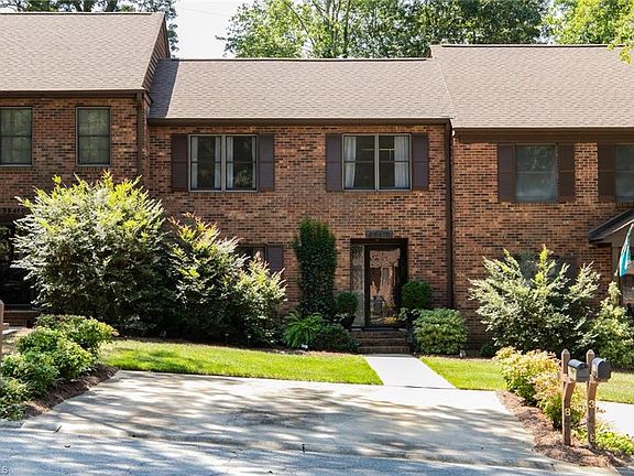 Designer, 3BR/2BA townhome in Village North, conveniently located near Oak Hollow Lake, downtown, Gboro, WS, Kville and PTI. Lrg great rm w/vaulted ceiling, dining area & gas fp. Kitchen w/recently updated flat surface range, frig, dishwasher, microwave & disposal. Like new Maytag W/D, conveniently located off 1st fl hallway & convey. Carolina rm w/lots of natural light, stunning views of garden, w/mature hdwds, rhododendrons & azaleas. Gazebo offers perfect relaxing spot to enjoy the natural beauty of nature. 1st fl primary br, also has 2nd fl primary, both w/adjoining brs accessible ensuite and/or hallway, Lrg floored attic, 2 utility closets, entry closet, linen closet & under stairs allow extra storage. Recent updates:closet systems w/LED lighting, light fixtures, seat height toilets, HVAC, water heater, flooring, crawl space encapsulation w/dehu & sump pump, Phenomenal Aire purification system & new roof. Brinks security system in place. 2 parking spaces w/overflow for guests.