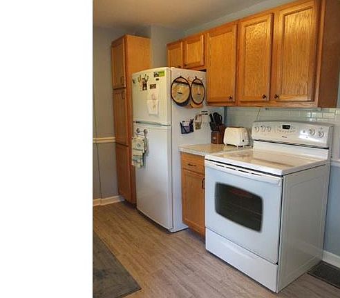 Move in ready 3 bedroom, 1.5 bath bungalow with cute front porch and fenced backyard! This great home offers a living room with wood burning fireplace and picture window, eat in kitchen with pantry, dishwasher and new cabinets, flooring, countertops and backsplash. 2 bedrooms along with updated full bath with tile shower complete the main floor. Large 3rd bedroom on the 2nd floor. Finished lower level complete with recreation room, office/play room and half bath with granite countertops and room for storage too! Great backyard with patio, 2 storage sheds and is fully fenced! Inviting front porch, 1 car attached garage, 2 car wide driveway, convenient location and so much more! A must see!
