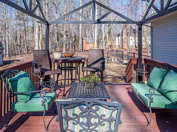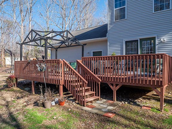 Great 3 bed, 2.5 bath home on 1 acre, with a fenced yard! Relax on the oversized deck and watch the wildlife in this quiet neighborhood! Kitchen has stainless steel appliances, electric range with double oven. Separate dining room for entertaining, or eat in the kitchen. Large living room w/ wood floors & surround sound! Downstairs has waterproof luxury vinyl floors. Large 2 car attached garage plus storage shed! Convenient to Chapel Hill & Mebane.