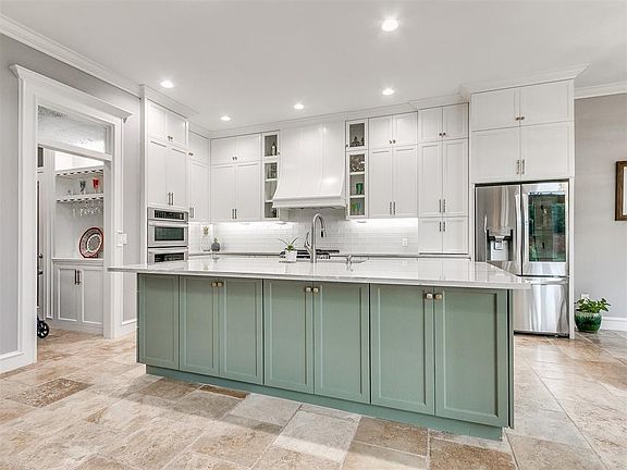 This BEAUTIFULLY REMODELED home could be yours. The spacious kitchen is completely updated to include a large center island with gorgeous quartzite countertop & a large galley-style sink with workstation accessories. The newly built cabinets, with glistening hardware, provide plenty of storage; which includes a party tray drawer & spice rack drawer.The all-new stainless appliances include a 5-burner gas range with griddle, convection oven with built-in air fryer, microwave/convection oven plus a built-in single oven. Double doors lead to the primary suite that's so spacious and secluded from the rest of the home. A fireplace, built-in cabinetry & lanai are special features of the space. A second set of double doors lead to the remodeled primary bathroom where new cabinets, gorgeous hardware & beautiful new granite countertops create a space that looks & feels like a serene spa; and an incredible new walk-in shower with designer tile & multiple shower heads is the finishing touch. Large His & Hers walk-in closets are at opposite ends of the bathroom.