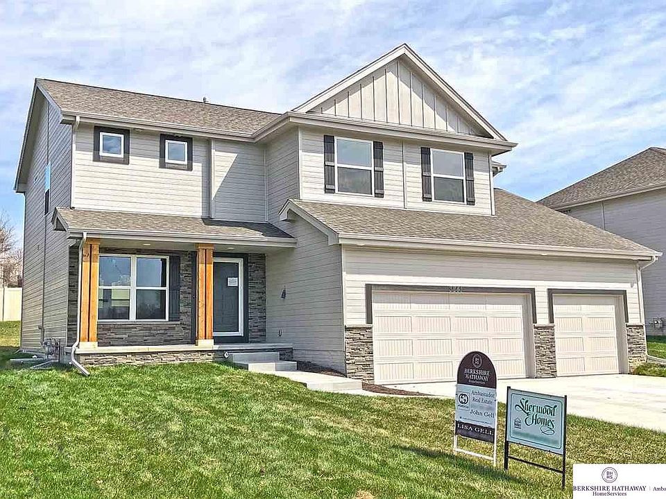 Sherwood Homes New Holden 2 story. Popular Elkhorn South Schools. Wide open great room, kitchen and flex room with wood floors, custom cabinets and quartz counters. Popular Craftsman style trim package. Main floor office off of drop zone. Large 3 car garage. Master bedroom suite features a sitting room and huge walk-in closet. Master bath has walk-in tile shower. Bedroom #2 has en-suite bath. All bedrooms have a walk-in closet. There is a second floor laundry room and more.