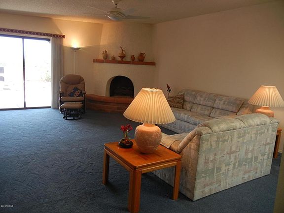 Spacious, inviting home w/wonderful living space and stunning mountain views from inside and out. Popular Miramar floor plan has 2 Bedrooms/2 Baths/Den/Over-sized Garage. Cheery kitchen, plumbed for gas range, has breakfast nook that opens to covered wrap-around patios. Living room is truly a ''room with a view'' PLUS a fireplace! Spacious bedrooms can accommodate king-size furniture. Master Suite has huge walk-in closet you'll love. Guest bedroom has its own private, patio and murphy bed. Skylights. Tile in all the right places. Oversized 2 car garage w/LOTS of storage cabinets! Walled yard is nicely landscaped. Bricked sundeck. Washer/Dryer, 2 fridges, stay. Seller providing AHS Home Warranty. Retire in style here! Make this wonderful property YOUR new HOME SWEET HOME!