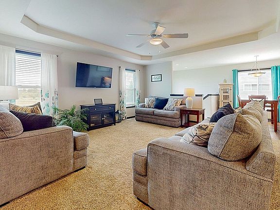 Discover this move-in-ready ranch home, perfectly situated in a serene, family-friendly neighborhood just minutes from Highway 13, Hy-Vee, and Boulder Peak School. The main level features a seamless blend of carpet, luxury vinyl plank, and vinyl flooring, with an inviting tray ceiling, a modern kitchen with a breakfast bar, and a cozy primary bedroom with a stylish en-suite bath. The partially finished walkout lower level offers an additional bedroom, full bath, workout area, and storage. Enjoy outdoor living on the porch and patio overlooking a well-maintained yard. This home combines convenience, comfort, and contemporary style for an ideal living experience. Call today for a private showing!