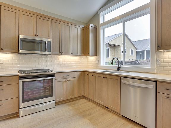 New home in the heart of Sandy! Lovely floor plan w/3 bedrooms,2 full baths & bonus rm up.Beautiful laminate floors and vaulted ceilings through entry,great room,kitchen & dining.The kitchen offers ss appliances,quartz & a large island that opens to the dining.A vaulted master suite features a spa like bath w/soak tub,dble sinks & walk in closet.Fully landscaped yard,covered vaulted porch & a 2 car garage .