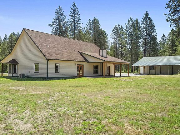 Nestled on 10 private acres, this spacious 2007-built rancher offers over 2,500 square feet of single-level living. Designed with comfort and charm in mind, the home features large rooms, soaring cathedral ceilings, and rustic wood trim that create a warm and inviting atmosphere. Upgraded materials throughout, including a stone surround fireplace with durable hardboard siding, rich wood flooring, and both covered front and back patios—perfect for relaxing or entertaining. Enjoy the efficiency of radiant floor heating, electric forced air backup, and a brand-new central A/C system. A two-car attached garage provides convenience, while a 30x40 shop with a loft and a 14x40 carport/storage area adds ample space for projects and storage. RV Parking with power, a concrete pad, and separate drain field. The roof is just two years old. This property combines comfort, functionality, and privacy.