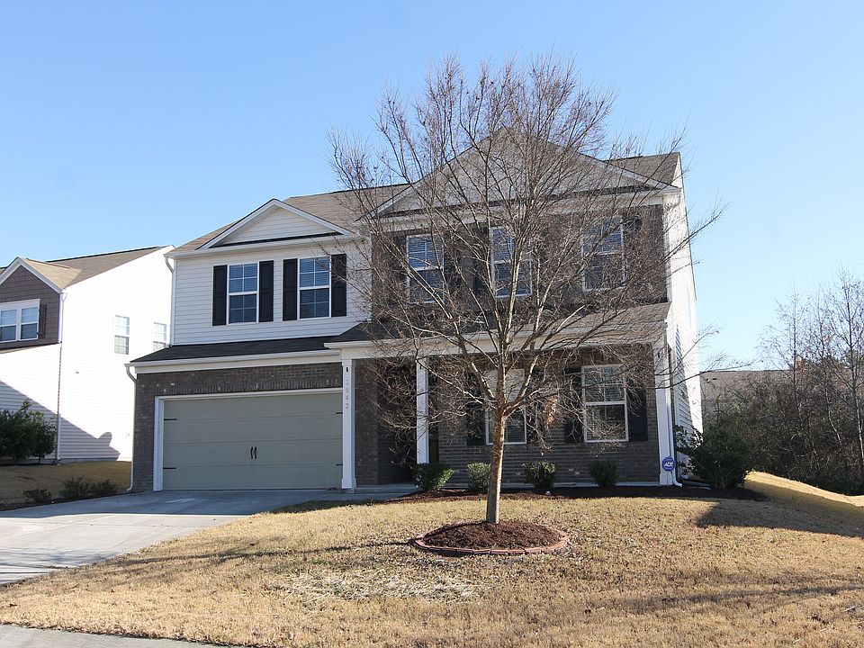 Come and check out this shiny move-in ready home! Fresh paint and new carpet. Hardwood flooring on 1st level. Spacious living with cozy gas log fireplace. Chef kitchen has 42" cabinets, granite counters, SS appliances & tile back-splash with sight to family room, dining room & breakfast nook. 1st floor guest BR & full bath. Retreat to the master suite with soaking tub and seperate shower. 2 other large bedrooms and loft/bonus room on 2nd floor. Enjoy the flat back yard backing up to green space