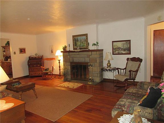 There are many nice features with this solid, 3 bedroom, brick ranch! The features include lots of cupboard and counter space in the kitchen, a nice sized dining room, a large living room with a bay window and stone fireplace with a mantle, double pane windows throughout, glass block windows in the full basement, walk-in closets in all bedrooms, and a bay window in the master bedroom. In addition, there is a 19 x 16 partially covered deck off of the kitchen leading to the backyard. All of this on a large wooded lot!