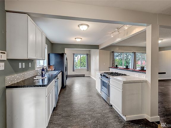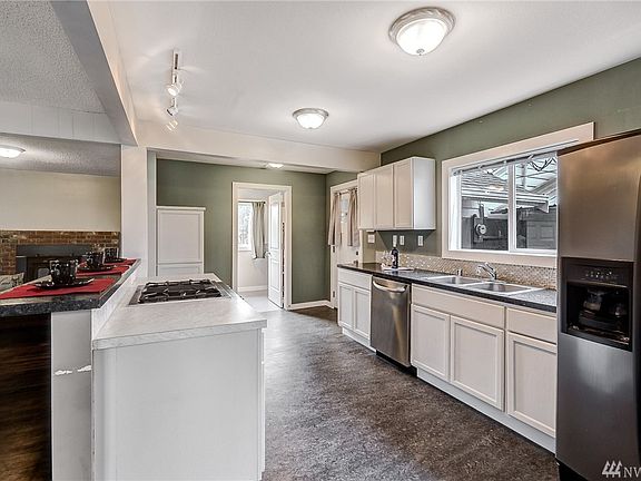 Lovely updated rambler on just shy 1/2 acre in convenient location, 3 bedroom / 1 bath, updated kitchen w/SS appliances with gas range, white cabinets & tile back splash, breakfast bar, newer laminate flooring, new doors, new lighting,newer composition roof, utility room with washer & dryer included. Open floor plan w/fireplace with detached 1 garage and carport, fenced yard, RV parking and so much privacy! Close to freeways, Puyallup Schools. This home just shines!