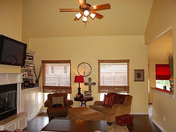 This Home sits on a Half Acre Lot with a Fully Fenced Backyard. New Roof in July 2020. Stained Concrete Floors throughout Front Study, Formal Dining, Living and Kitchen. Living Area with Vaulted Ceiling, Fireplace and Built Ins. Kitchen has Granite Counter Tops, Pantry, Island, and Stainless Steel Appliances. In-Ceiling Speakers for Living Room, Kitchen, Formal Dining, Primary Bedroom and Bathroom and Patio. Spacious Primary Bedroom has Access to the Back Porch and Private Bath with Double Vanities, Whirlpool Tub, Shower, and Walk in Closet with Built in Dresser. All Bedrooms have Ceiling Fans and Walk In Closets. Laundry Room with Cabinet Storage. Large Covered Back Porch. Extended Garage offers Ample Storage Space and Storm Shelter.