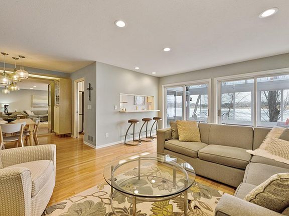 You will feel right at home the minute you step in the front door of this fabulous hard-to-find, high-demand lakefront townhome with wonderful updates - knockdown ceilings and recessed lighting on the main level, "real" wood" flooring, soothing designer paint colors, lighting and electrical and more. Spacious, open floor plan overlooking lake and plentiful wildlife from eat-in kitchen, dining area, living room with gas fireplace and sun porch. Ginormous master bedroom with balcony, super spacious master bathroom with soaking tub and dual vanities overlooking the lake. Master bedroom offers a huge walk-in closet. Additional bedroom on the upper level with two closets. Convenient upper level laundry. Flex room on main level can be used as bedroom with double closets, study, living room - however you choose to use it. Additional family room in the lower level. Tons of storage window throughout. You will LOVE the boardwalk, the fireworks, quaint downtown Robbinsdale, new Hy-Vee and more.