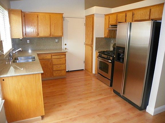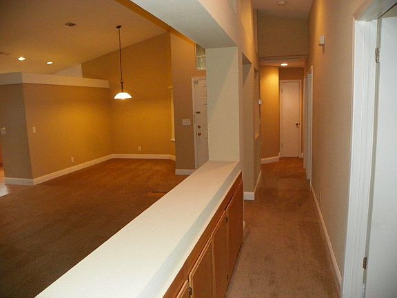 Single story 4 bedroom 2 bath home with vaulted ceilings, laminate flooring throughout the home, 2 sided fireplace, 2 car garage, parking on side for rv or boat, nice size backyard. Pics show carpet but house has laminate now. Tenant pays utilities