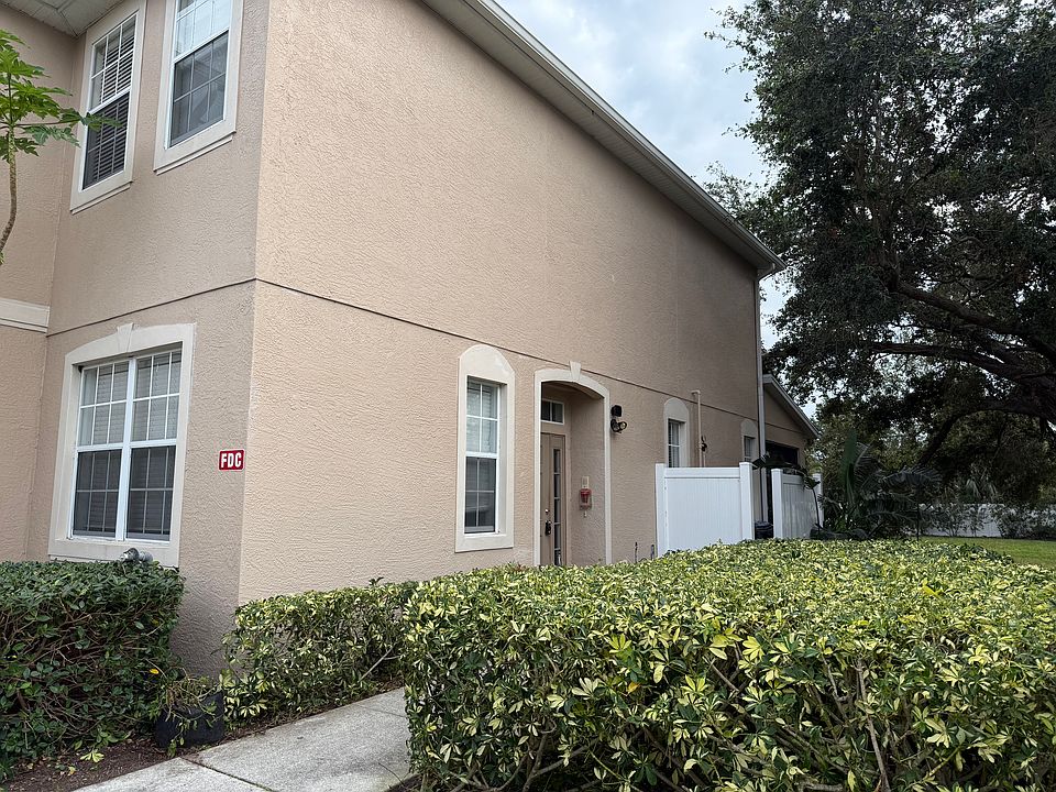 Newly painted: new screens in lanai Professionally cleaned Office downstairs opens into one car garage Front door opens to foyer and living room Lots of light through windows and lanai off kitchen. Powder room bath downstairs Washer and dryer upstairs in hall. Master bedroom with en-suite bathroom. Hall bathroom for other 2 bedrooms. Community pool Water and electric by tenant Yard maintenance by owner Pest control complete. Tenant to handle after move in Washer and dryer provided but not replaced or repaired Annual lease No smoking Pet considered with fees