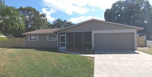 Completely updated and remodeled from floor to ceiling. Almost everything is new and fresh. It's like a brand new home. Every finish throughout the home is beautiful. Fantastic layout. 3 bedrooms and 2 bathrooms. A formal living room and a family room overlooking the caged pool area at the rear of the home . An inside laundry room and a 2 car garage. A BRAND new kitchen with gorgeous solid wood cabinets (all doors and drawers have the slow close feature) with beautiful granite and brand new SAMSUNG stainless steel appliances. Kitchen has breakfast bar too. The list of brand new items is as follows a/c system, garage door, all interior and exterior doors and hardware, all new flooring (ceramic tile in wet area's, wood laminate in living area and carpet in bedrooms), interior paint (including ceilings), exterior paint, front enclosed/screened patio has indoor/outdoor carpet,kitchen cabinets with granite counter tops, SAMSUNG stainless steel appliances, bathroom vanities with granite counter tops, toilets, ceiling fans, light fixtures and 5.25" baseboards throughout. All of this is situated on a HUGE 1/3+ acre lot. Bring your toys, boat or RV - no deed restrictions to worry about.