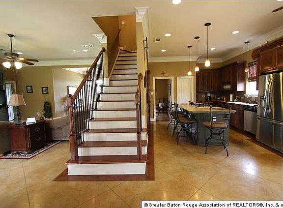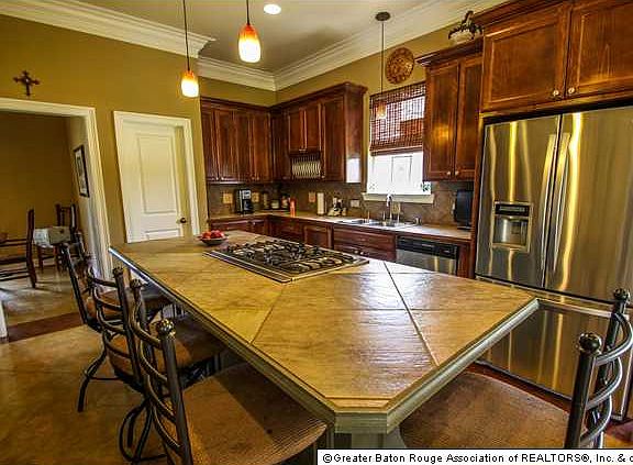 Fisher mans Dream Home with a private stocked pond and a secluded 1.25 acre retreat. The inside of this home is equipped with a gorgeous antique mantle wood burning fireplace and a built-in entertainment system surrounding it. The kitchen has an enormous island, gas cook top, double ovens, stainless appliances, massive pantry and a wet bar. This home has a wonderful formal dinning room that overlooks the pond and a private breakfast room located in the back. The Master Bedroom is to die for with 2 giant walk in closets, built-in cabinets, a Jacuzzi tub, separate shower, double sinks and a woman's vanity area. Other bedroom downstairs has wood flooring and it's own private bath. The bedrooms upstairs are equipped with their own full desks areas, walk in closets and full private baths with plenty of cabinet space. This is a flexible floor plan with a huge bonus room that can be used for anything you'd like. The outside patio is stained concrete, wonderful for family gatherings. This is a must see! Call today!